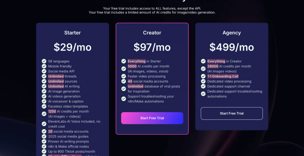 Blotato pricing typically starts around $29 per month for the Starter plan and about $97 per month for the Creator plan. Agency plans may have custom pricing. For the most up to date details, it is best to check the pricing page on Blotato.