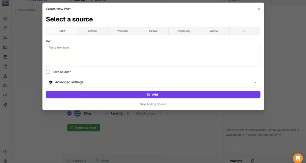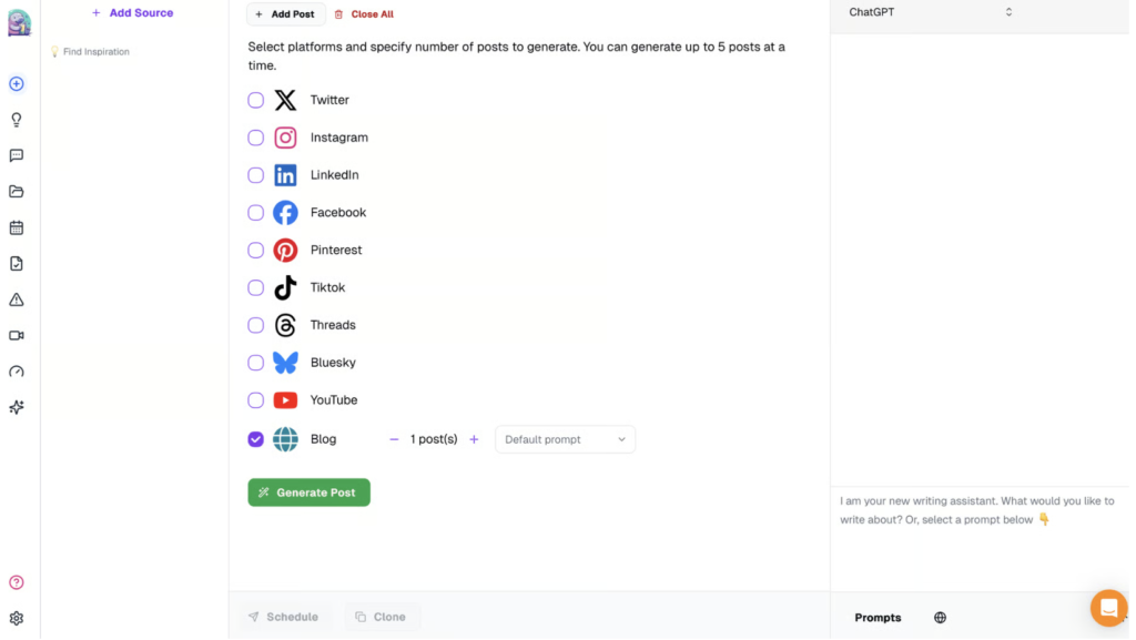 Blotato helps you write posts faster. You can create captions, hooks, and short scripts in one place instead of jumping between tools. This can replace basic writing work people often do in ChatGPT.